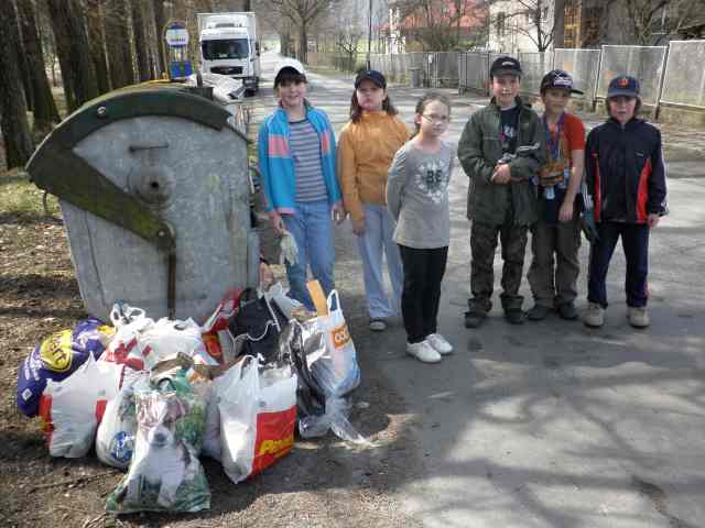 Na tento čtvrtek se děti ze 4. třídy těšily již dlouho. Naše téma: Přírodní společenstva – rostliny a živočichové žijící v přírodě ve vzájemných vztazích na jednom místě (v lese, u lidských obydlí, na poli, na louce, ve vodě a v jejím okolí). První hodinu jsme se věnovali danému tématu. Jelikož byly děti velmi tvořivé a soutěživé, začali jsme poté vytvářet ekologickou vlajku. Soutěž vyhlásily kolektivní systémy ASEKOL a ELEKTROWIN. Mohli jsme vyrobit vlajku z různých materiálů. Vlajka měla mít jarní motivy, velikost minimálně 1,5 x 1 metr a měla také evokovat sběr a recyklaci starých elektrospotřebičů. Vlajku jsme nestihli dodělat, ale pevně věříme, že ji stihneme dodělat včas. Poslední dvě hodiny jsme se všichni věnovali úklidu obce. Počasí nám přálo, veselá nálada nás neopouštěla.