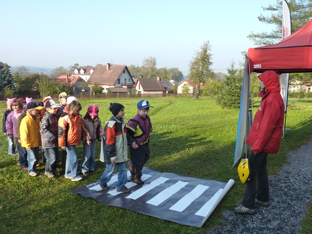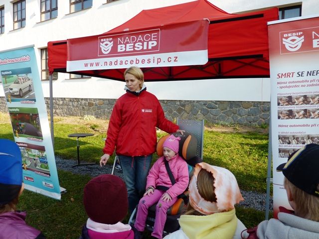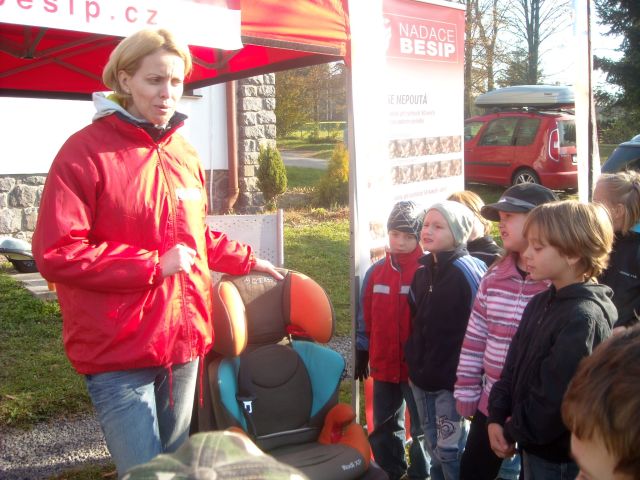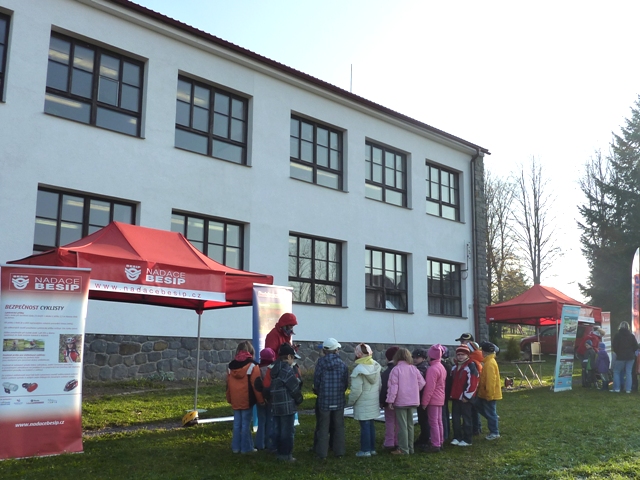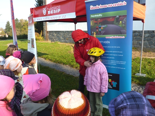Ve středu 13. října navštívili naši školu pracovníci promotýmu silniční bezpečnosti se svým programem praktické dopravní výchovy pro školy. Akce byla určena pro děti od 1. do 6. třídy. Žáci těchto tříd absolvovali postupně různé praktické činnosti na dvou stanovištích před naší školou. Úkoly byly zaměřeny zejména na vysvětlení smyslu základních pravidel, které mají největší přínos pro bezpečnost dětí v provozu a které jsou nejvíce podceňovány. Hlavními tématy tak bylo například zajištění viditelnosti chodce a cyklisty, správné přecházení přechodu pro chodce, správné použití cyklistické přilby a bezpečné cestování v automobilu.