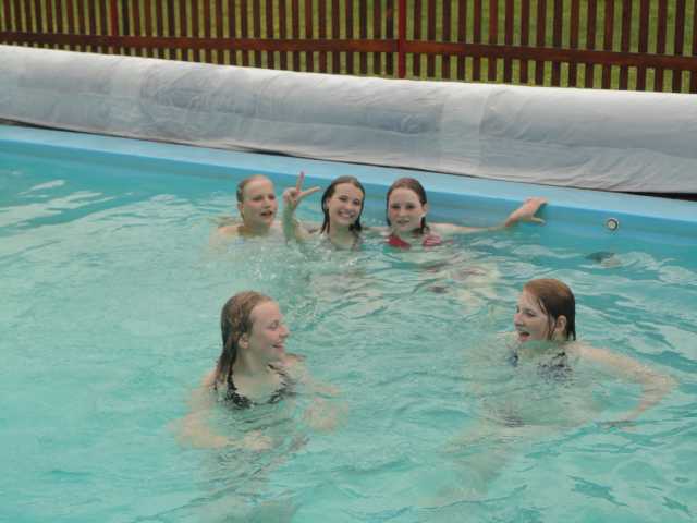 Plni očekávání jsme vyrazili ve středu 30. května 2012 směr Horní Bradlo, kde byl pro nás zajištěný třídenní pobyt v rekreačním středisku Tesla Vršov. Sluníčko od rána příjemně hřálo a slibovalo hezký den, který jsme dokonale využili. Zdejší vyhřívaný bazén je pro nás největším lákadlem a vodní radovánky prostřídané volitelnými sportovními aktivitami byly pro všechny tím pravým ořechovým. Ve čtvrtek dopoledne jsme rozděleni do pěti družstev hráli fotbal, volejbal, skákali do písku a soutěžili i v plavání. Odpolední vycházka lesem k mlýnu zvanému Na pilce s příjemným posezením u hlídajícího vodníka nám ukázala něco málo z krás zdejšího okolí. Páteční dopoledne bylo sice deštivé, ale nám to náladu nezkazilo. V hlavní budově areálu jsme hráli ping-pong, stolní hokej a atmosféru prosvětlil i náš zpěv za doprovodu kytary v rukou Michala Rubka. Výlet se opravdu vydařil a my se budeme těšit na některý z dalších společných výletů příští rok.