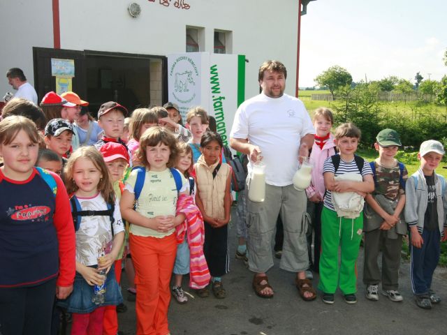 Žáci školní družiny se zúčastnili IV. ročníku výtvarné soutěže Bílé moře Vysočiny. Úkolem mladých tvůrců bylo zhotovit reklamní plakát na podporu spotřeby mléka a mléčných výrobků. Ve velké konkurenci škol kraje Vysočina se na prvním místě umístila práce žáků naší školní družiny nazvaná Automat na mléko. Odměnou v této soutěži byla exkurze na farmu rodiny Němcovy v Netíně, uskutečněná 17. června. Přivítal nás zde pan František Němec ml., který žákům přiblížil život na farmě, odpovídal na dětské dotazy a prozradil i pár zajímavostí o chovu skotu. Poté vystoupil radní kraje Vysočina pro oblast zemědělství Ing. Josef Matějek, který rovněž pogratuloval našim žákům k vítězství v soutěži a živě s nimi rozmlouval o spotřebě mléka a mléčných výrobků mezi dětmi. Nato nás v Netíně přivítal i starosta Karel Liškař a seznámil nás se zajímavostmi obce. Děti byly návštěvou zdejšího hospodářství doslova nadšené. Mnohé z nich měly poprvé v životě možnost pohladit si tele, uvidět zblízka velké množství hovězího dobytka či si zajezdit na koni. Velkým zážitkem bylo pro všechny zúčastněné rovněž dojení na trenažéru a prohlídka zemědělské techniky. Při procházce okolím obce jsme měli možnost obdivovat velké množství kulturních a přírodních památek Netína – např. farní kostel Nanebevzetí Panny Marie, novogotickou hrobku Lobkowiczů, kamennou křížovou cestu s alejí lip či soustavu netínských rybníků. Na své si přišly též mlsné dětské jazýčky při ochutnávání vynikajících koláčů paní Němcové i mléka a probiotických nápojů, jež produkuje zdejší minimlékárna. Na závěr nádherné exkurze nechyběl ani táborák a grilování. Všechny děti rovněž obdržely mnoho dárků věnovaných farmou rodiny Němcovy, obcí Netín a krajem Vysočina. Na farmě se nám všem nesmírně líbilo a děkujeme celé rodině Němcových za báječný den strávený na jejich hospodářství. Velké poděkování patří také společnosti Zemědělská a. s. Krucemburk, která pro nás zajistila ve své režii dopravu.