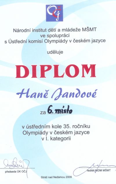 Ve dnech 18. - 24. června se konalo ústřední kolo olympiády v českém jazyce, do kterého se mi povedlo postoupit z kola krajského. Ve čtvrtek 18. června se většina účastníků sešla v Praze, odkud jsme společně odjeli do Lučkovic.